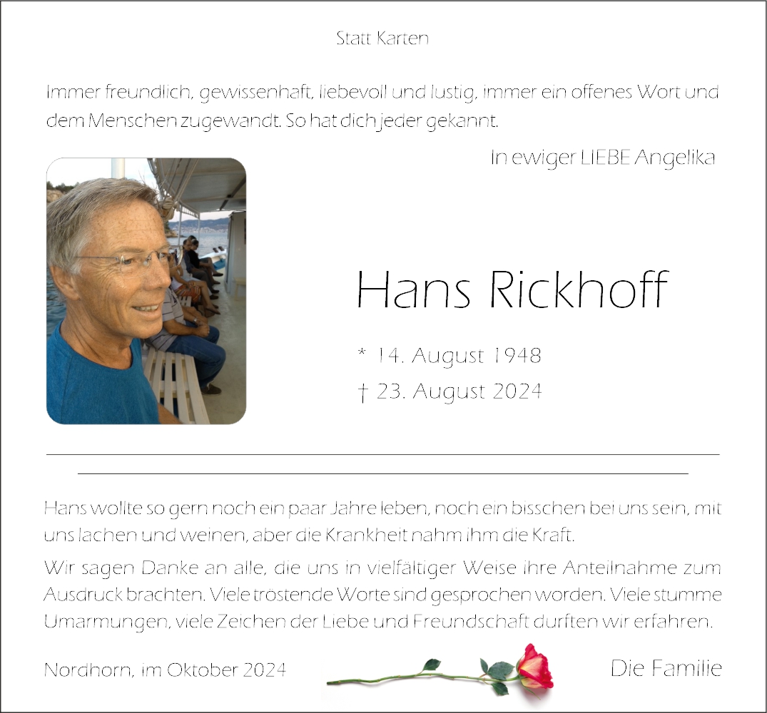 am: 30.08.2024 Kondolenz lesen von: Marco Rickhoff,Kondolenz