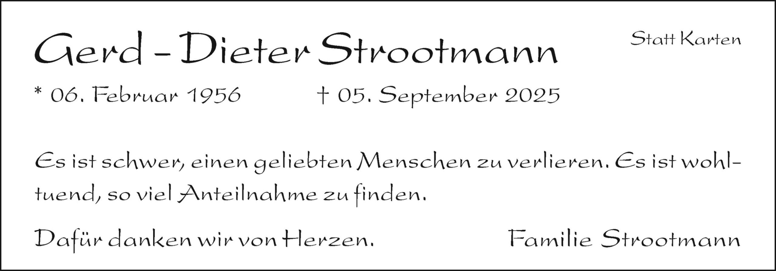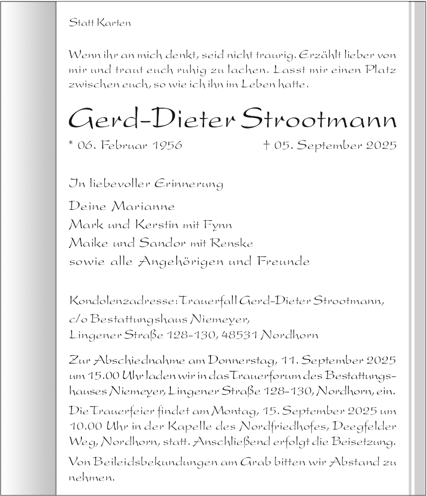 am: 11.09.2025 Kondolenz lesen von: Thorsten und Heike,Kondolenz